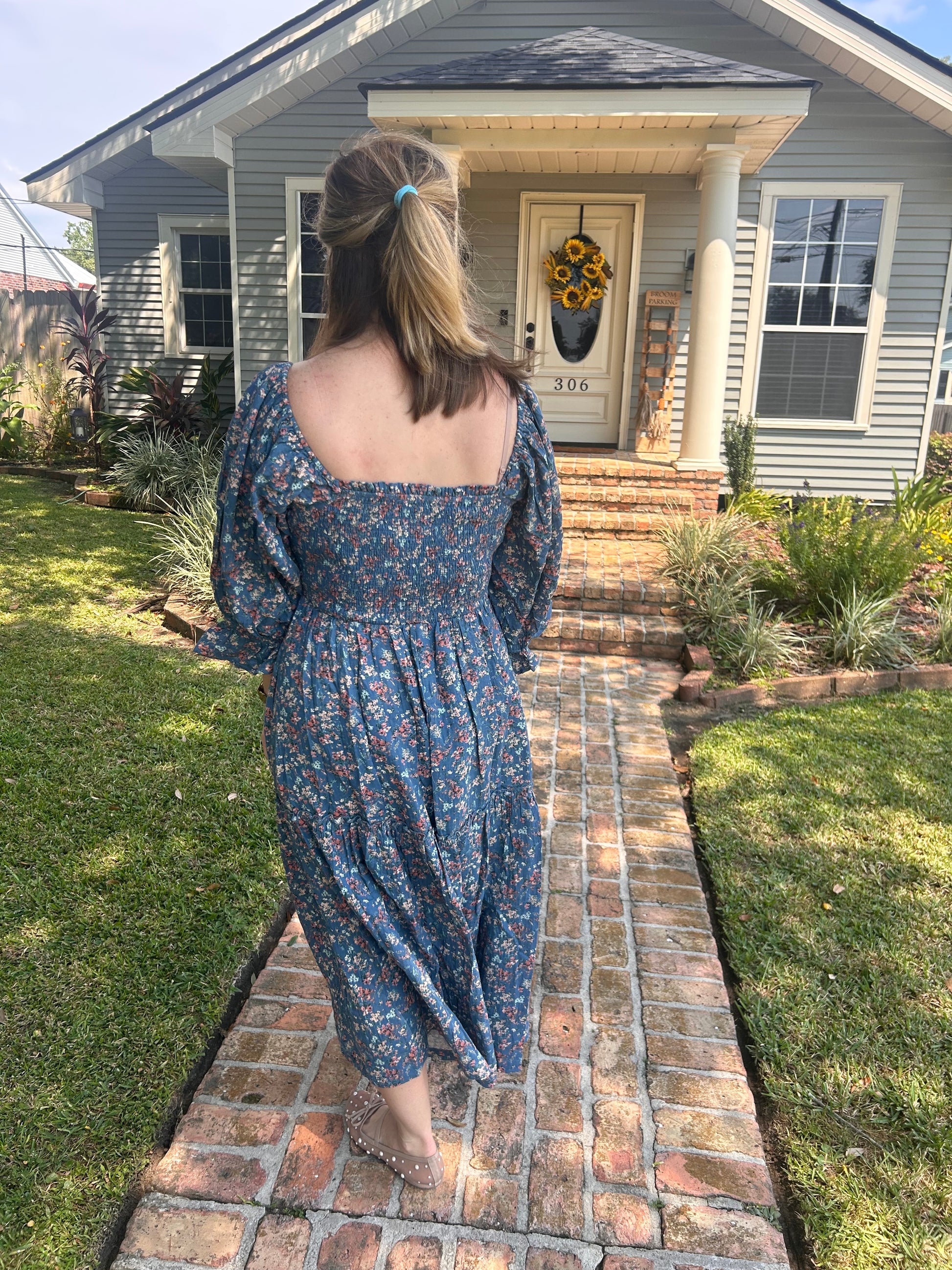 Sweet and timeless, this midi dress is covered in a delicate tiny floral print on gauze-like fabric that feels super soft and effortless. The smocked bodice and square neckline give it a flattering, feminine fit, while the quarter-length sleeves make it perfect for transitioning into fall. A perfect option for expecting moms, fall photos or a go to for casual events.