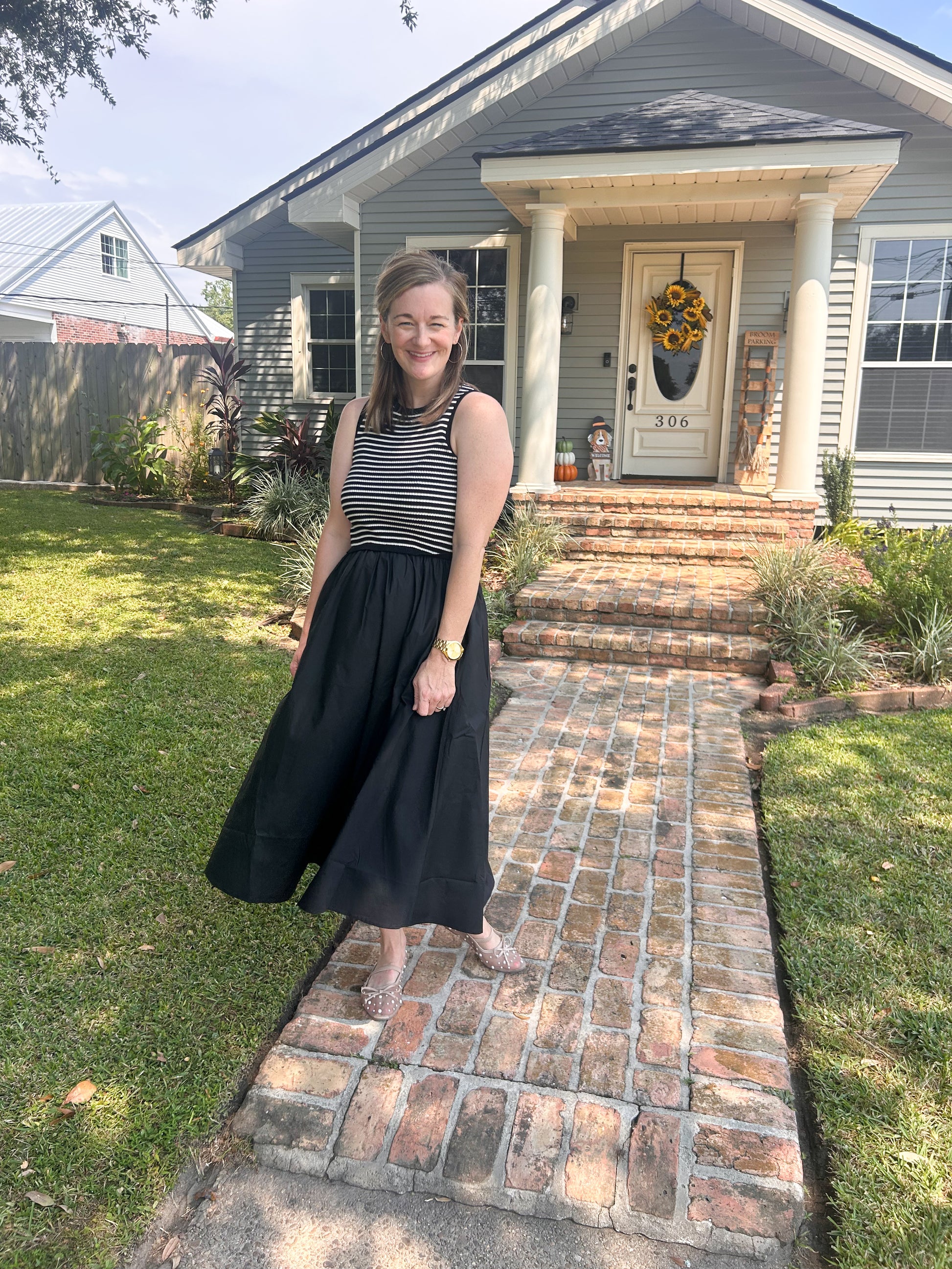 Chic and classic, this knit top and cotton bottom skirt combo is the perfect all-in-one look. Designed with handy pockets and an easy silhouette, it’s comfortable yet elevated. Layer with a jacket or cardigan and boots for a cozy fall outfit that looks effortlessly put together.