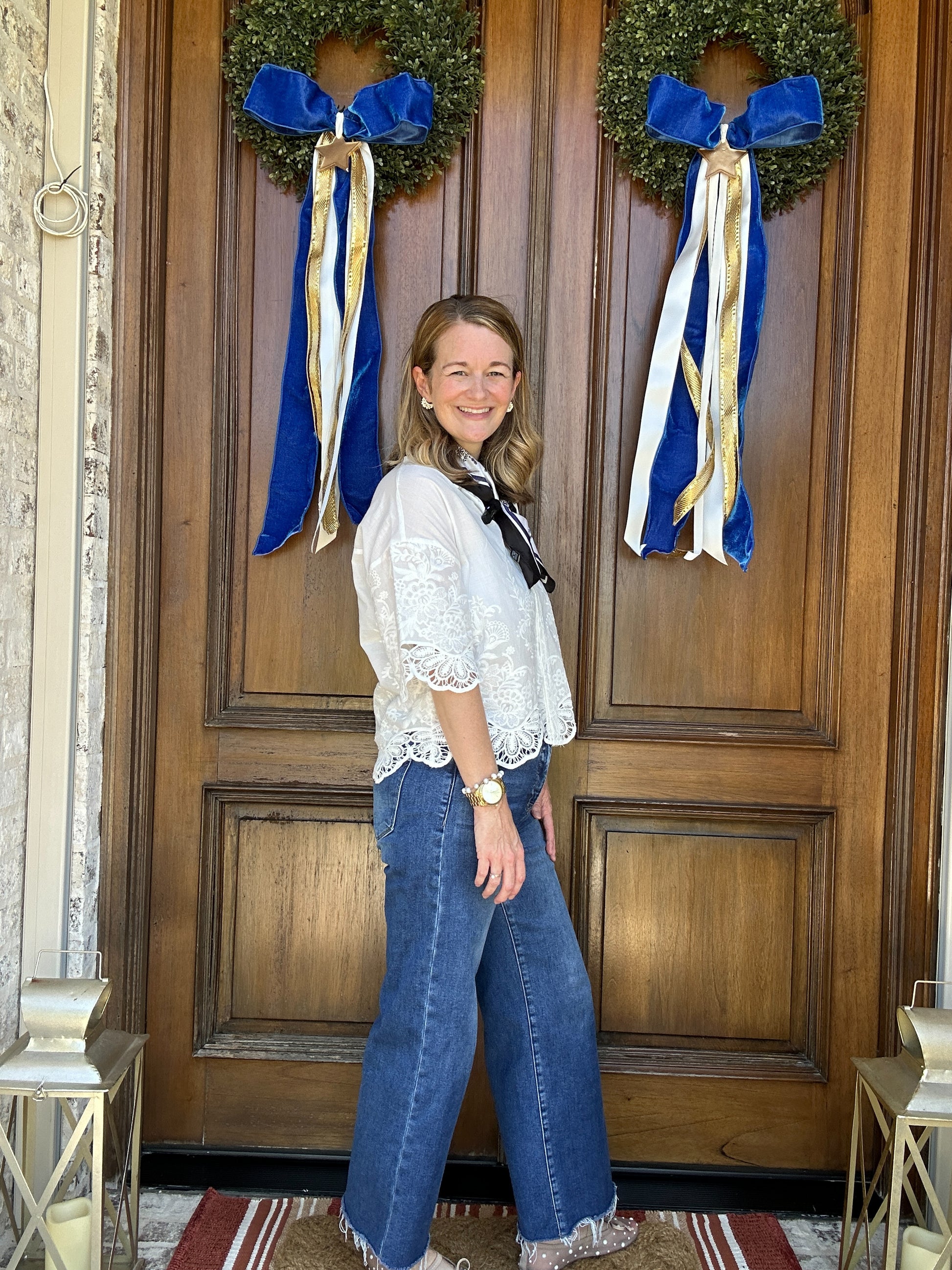 A true wardrobe classic — this white eyelet button down pairs with everything while adding just the right touch of feminine detail. Lightweight, versatile, and timeless, it’s the kind of top you’ll style countless ways all year long.